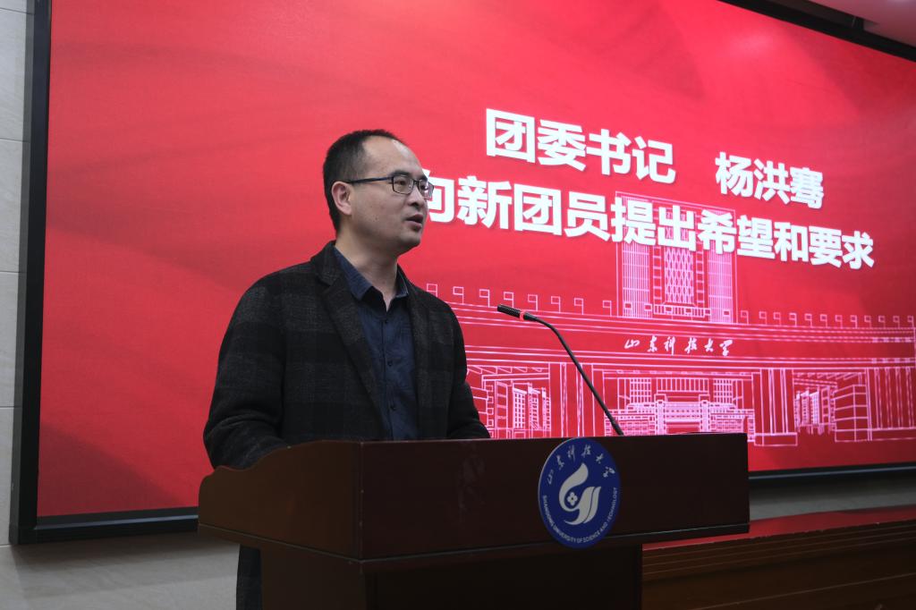 杨洪骞向新发展团员表示祝贺,并提出三点希望:一是要筑牢信仰之基,通过学习党史团史传承红色基因,让理想信念在学思践悟中生根发芽;二是要锤炼过硬本领,主动参与科技创新、志愿服务与乡村振兴实践,成为高质量发展的生力军;三是要砥砺担当之志,实现“形式入团”到“思想入团”的转变,在急难险重任务中勇挑重担,在服务同学中锻炼作风,在锤炼品格、增长本领中不断向党组织靠拢,让青春在为党和人民事业的奋斗中更有价值。