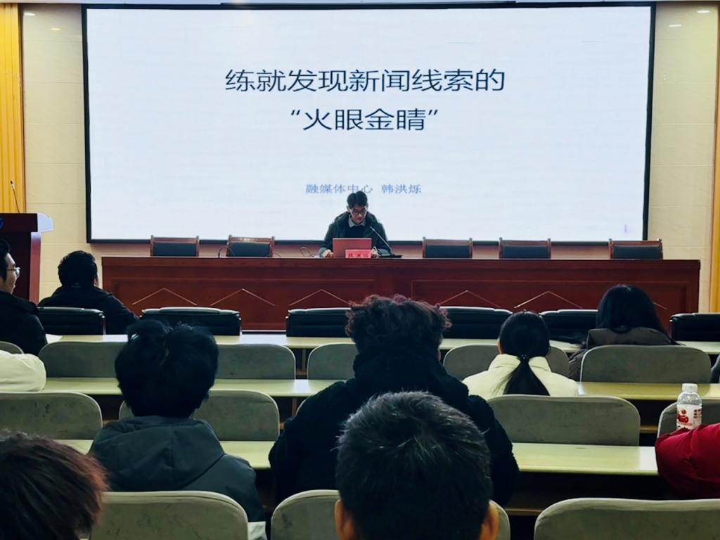 第二期培训于12月5日开展。韩洪烁老师聚焦“练就发现新闻线索的‘火眼金睛’”这一主题,将重点放在新闻生产的源头——线索发掘上。讲座中,韩洪烁运用大量正反实例进行对比分析,深度讲解了如何从日常的教学科研、管理服务、校园文化和学生活动中,捕捉和挖掘鲜活、生动的新闻素材。他要求宣传骨干们既要胸怀大局、关注“大事要事”,也要眼光向下、善于发现“小事新事”,在日常工作中养成随时观察、随手记录、持续思考的良好职业习惯。