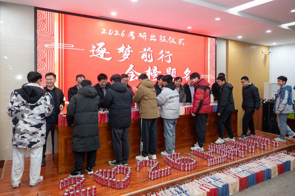 活动中,学院领导老师们将精心准备的“逐梦福袋”赠予每位考研学子。福袋中,学院定制书签刻有励志寄语,寓意笔下生辉、前程似锦;“薯愿”薯片寓意备考顺利、事事如“愿”;脐橙象征“脐”开得胜、心想事“橙”;暖宝宝承载着一份暖心相伴的祝愿;定制姓名可乐则传递着“一举夺魁、榜上有名”的美好祝福。一份份礼物寄托着学院对考研学子金榜题名、梦想成真的殷切期盼。