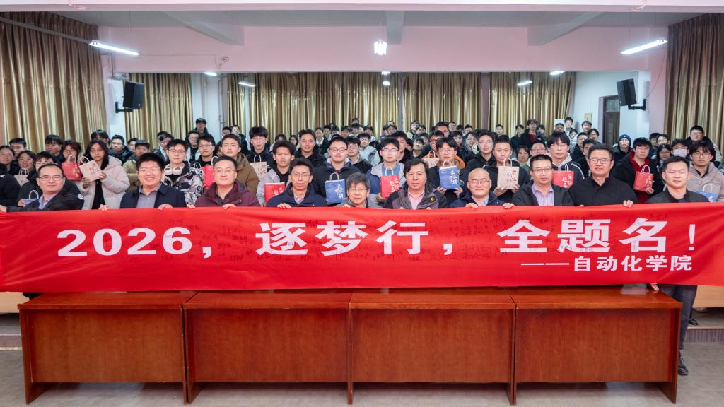 2026年全国硕士研究生招生考试临近,为鼓舞学院考研学子斗志、缓解备考压力,12月11日,自动化学院在J11-118举办“逐梦行,全题名”考研暖心激励活动。学院院长张焕水,党委副书记兼副院长赵洋,副院长盖文东、周封、王建东、朱延正,院长助理于永进、盛春阳,团委书记、2022级辅导员杨洪骞,2022级辅导员郭海港为全力冲刺的考研学子送上暖心关怀与诚挚鼓励。