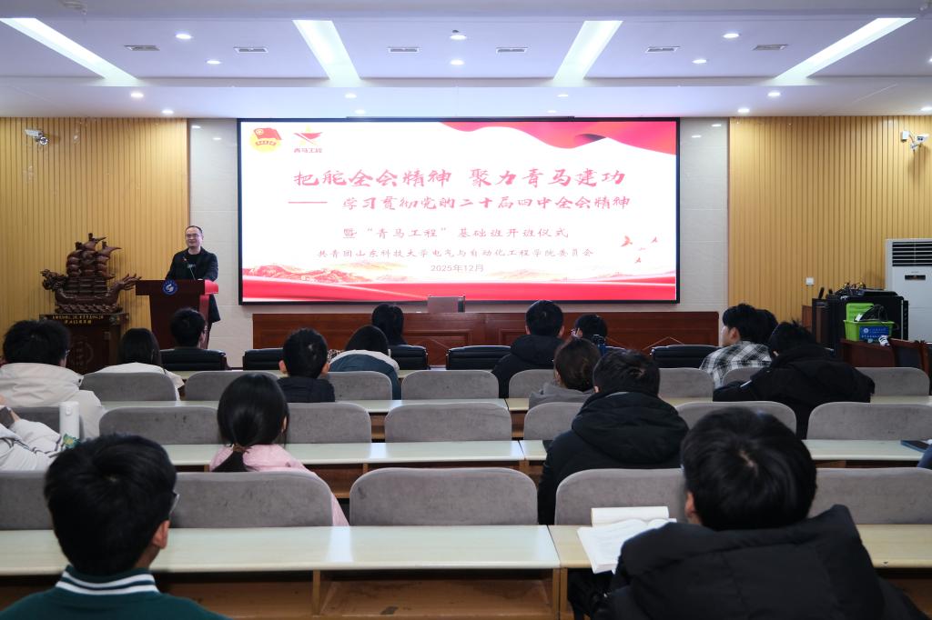 为深入贯彻落实习近平总书记关于青年工作的重要思想,持续强化青年思想政治引领,12月25日,自动化学院第七期“青马工程”基础班开班仪式在J11-118泰山报告厅举办。学院特邀马克思主义学院副院长邵勇教授讲授开班第一课,学院团委书记杨洪骞、辅导员秦梦及全体学员参加仪式。