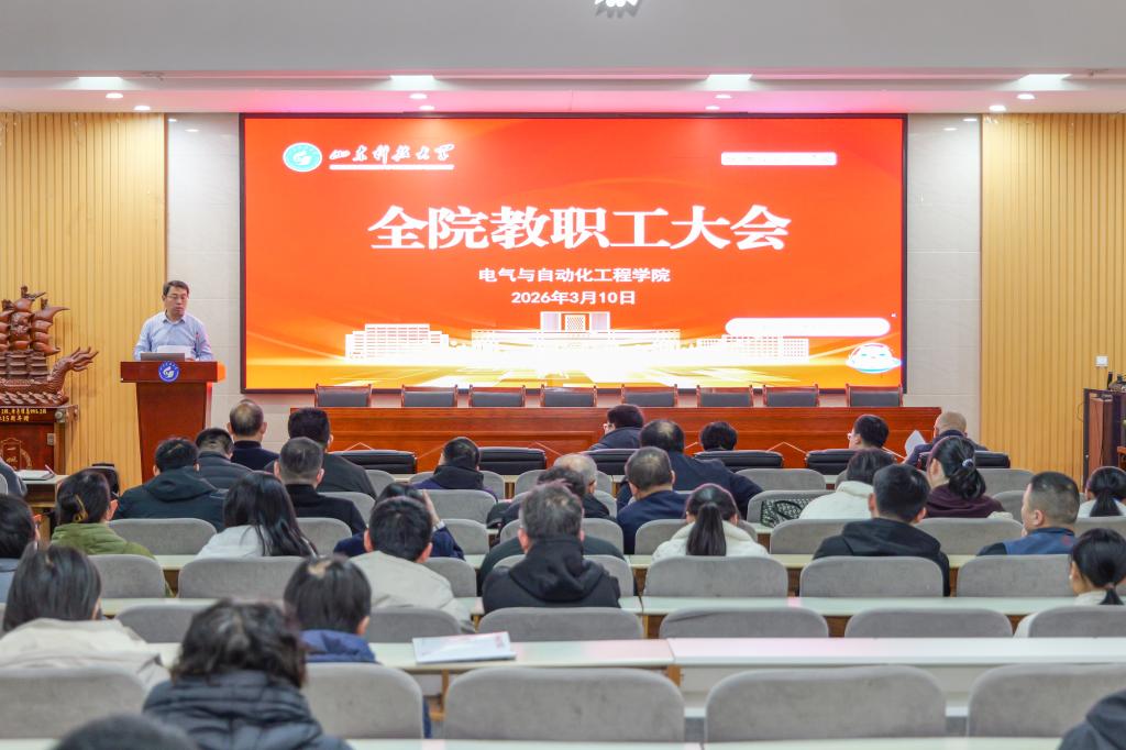 3月10日,自动化学院在J11泰山报告厅召开2026年新学期全院教职工大会。学院领导班子成员及全体教职工参加会议。会议由学院党委书记申兆亮主持。