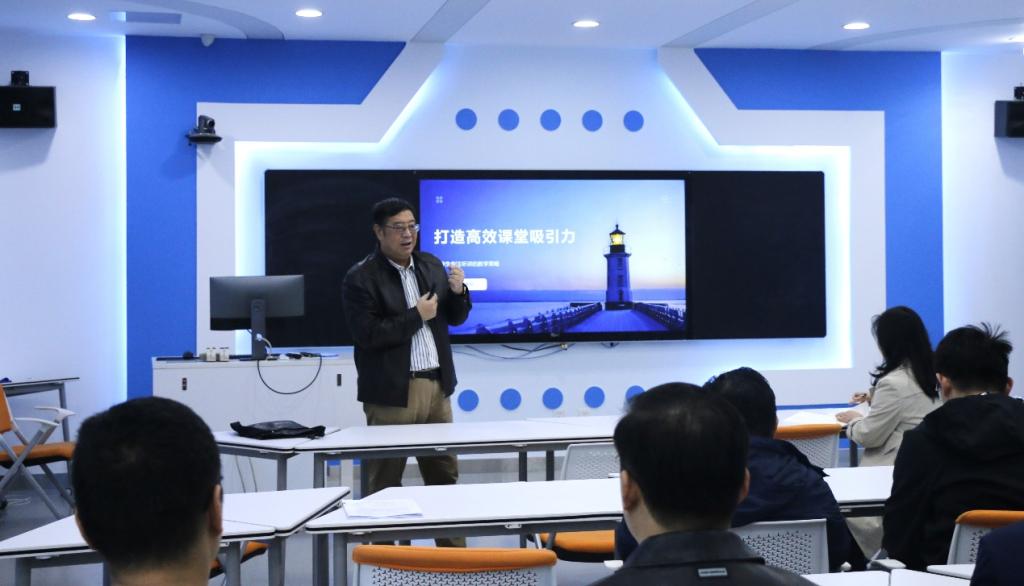 第一阶段,张督导做了题为《打造高效课堂吸引力》的教学报告,内容涵盖课堂设计、师生互动、节奏把控等方面。张督导指出,教师应在课程导入时迅速抓住学生注意力,通过问题驱动与情境创设激发兴趣,以及课堂中合理安排讲授与互动比例,借助案例分析、小组讨论、即时测验等多样化形式保持学生参与感;注重语言节奏与板书设计,减少信息过载,让学生更容易跟上思路;同时,注意课程思政潜移默化的融入教学环节。此外,他还强调建立课堂规则、及时给予反馈的重要性,帮助学生形成良好的听课习惯。