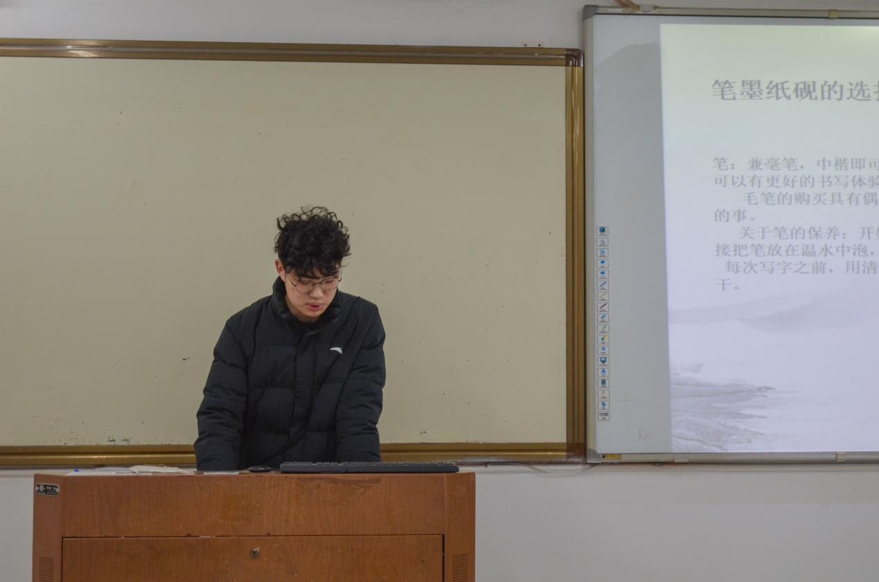 11月18日,书画协会在J1-217教室开展“笔走乾坤 墨染青春”楷书入门学习活动,为校内书法爱好者带来系统的书法启蒙指导。活动由协会成员王立童担任主讲。