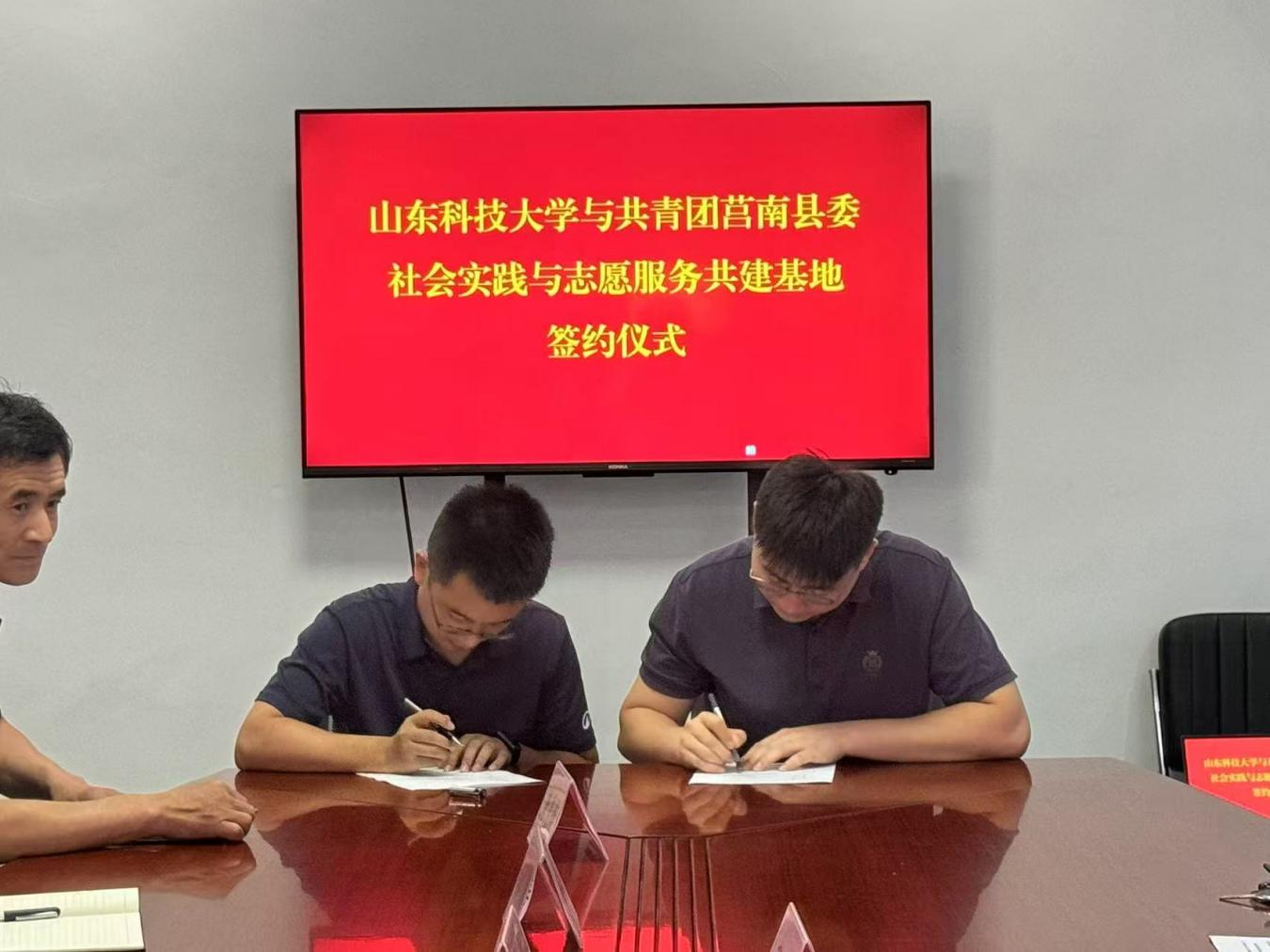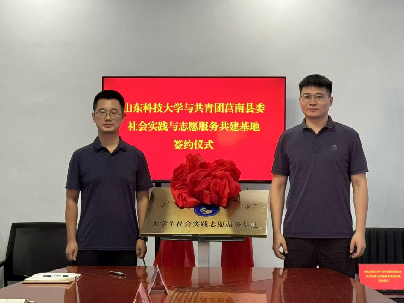 7月25日,电信学院与共青团莒南县委在筵宾镇金沟官庄村——山东省第一个团支部诞生地,正式签署《大学生社会实践志愿服务基地共建协议》,并为“大学生社会实践与志愿服务共建基地”揭牌,标志着双方在技术赋能实践、校地协同育人领域的合作迈入新阶段。团省委派驻筵宾镇金沟官庄村第一书记苗翠光、共青团莒南县委书记汤涛、副书记滕洪磊,筵宾镇党委组织委员冷夏梅、金沟官庄村党支部书记唐秀峰,以及电信学院团委老师张科共同出席签约揭牌仪式。