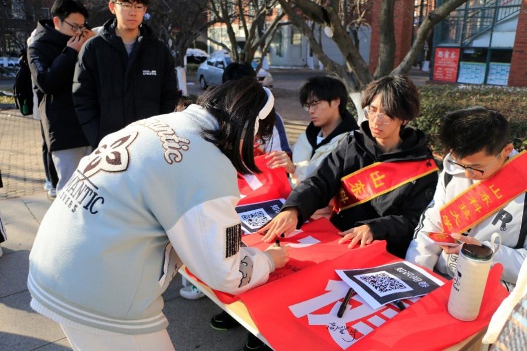 知识答题区前人头攒动,多名学生围聚在答题展板前,认真思考、积极踊跃作答。现场统计显示,答题正确率高达92%。不少答错题目的同学主动向志愿者请教,现场学习氛围十分浓厚。学生们长达10米的红色横幅上郑重签下自己的名字,每一笔都承载着他们对“主动防艾、关爱他人”的坚定承诺。“以前总觉得艾滋病离我们很遥远,今天参与活动后才知道日常防护的重要性,也深刻认识到不应该歧视艾滋病患者。”电信学院2024级学生王同学在完成答题后分享了自己的感受。