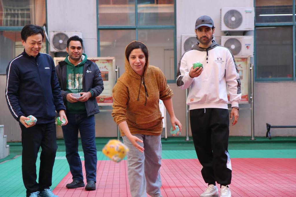 本次运动会共设置投壶、投沙包、保龄球三个趣味项目,各项目同步开展。投壶与投沙包项目采用“擂主挑战赛”模式,增加了比赛的趣味性和互动性,老师们热情高涨、积极投入。在保龄球项目中,老师们全力滚动排球,现场欢呼声、加油声此起彼伏。参赛的教职工们在协作比拼中释放了压力,在欢声笑语中凝聚了团队力量。