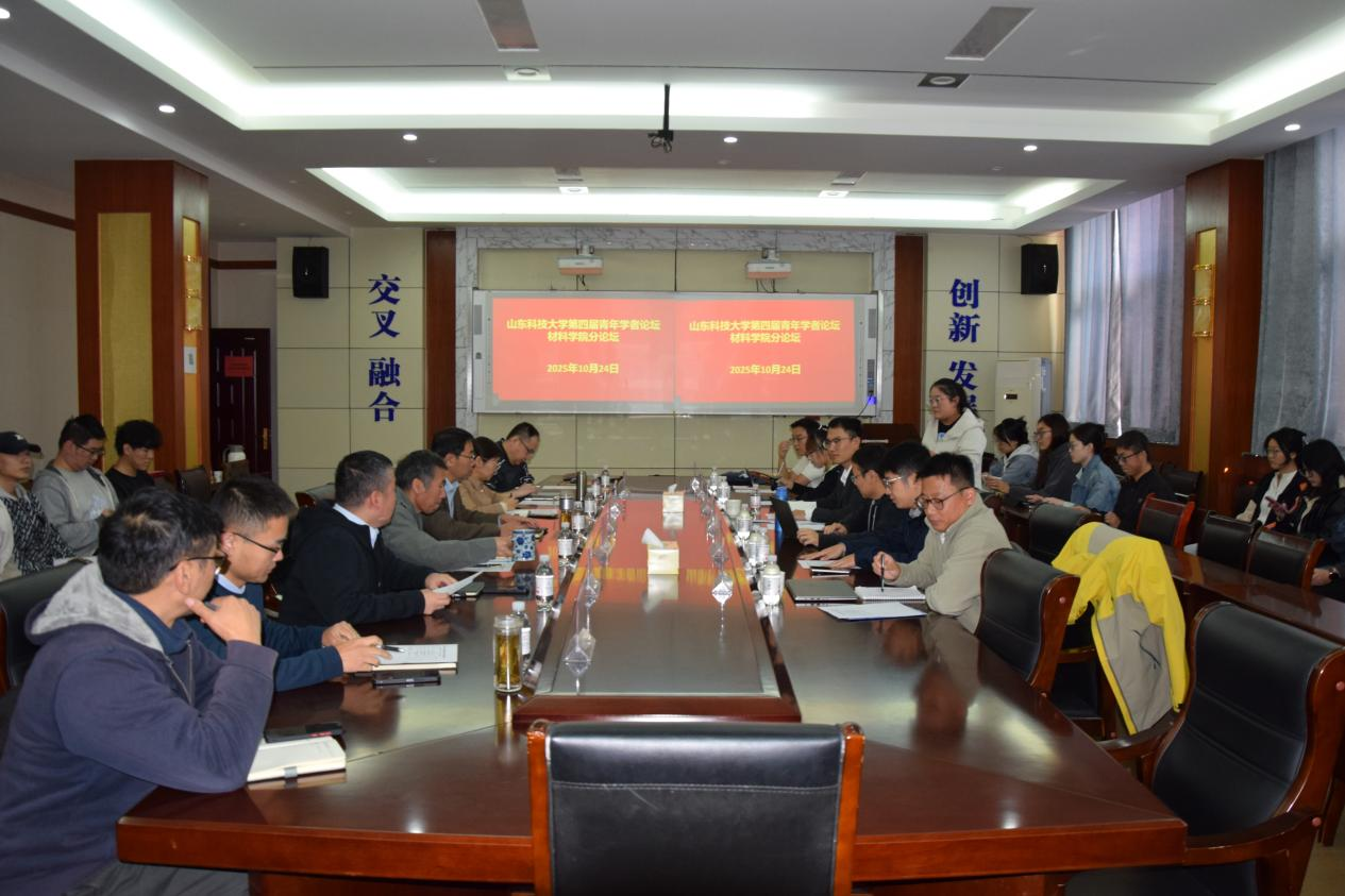 10月24日下午,山东科技大学第四届“山海泉”青年学者泰山国际论坛暨“博聚青岛·筑梦山科”博士(后)论坛材料学院分论坛在J2-434会议室顺利召开。材料学院党委书记申兆亮,副院长韩永芹、田健和部分教师学生代表参加论坛。本次论坛由材料学院副院长田健主持。