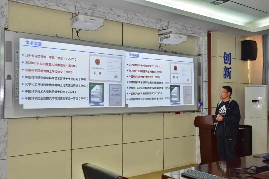 论坛上,6位优秀青年学者带来了精彩的学术汇报。加拿大女王大学的高国芮作题为《High-rate,Selective and Stable Electrochemical CO₂ Reduction in Aqueous Systems》的报告;香港理工大学的乔羚和高振国分别聚焦 “数据驱动多主元合金设计与变形机理研究”“电磁波吸收材料的多物理场耦合及无线能量交互”展开交流;香港科技大学博士钱希堂分享了“新型固态离子导体的设计、制备与应用”方面的研究;清华大学的程传钦学者围绕 “面向高效稳定蓝光 OLED 的材料设计与显示应用研究” 进行了深入探讨;美国德克萨斯农工大学的李宏伟学者则介绍了 “聚电解质材料的特性及应用”。各位学者的报告内容丰富、见解独到,展现了材料科学领域的前沿动态与创新成果,引发了现场师生的热烈讨论。