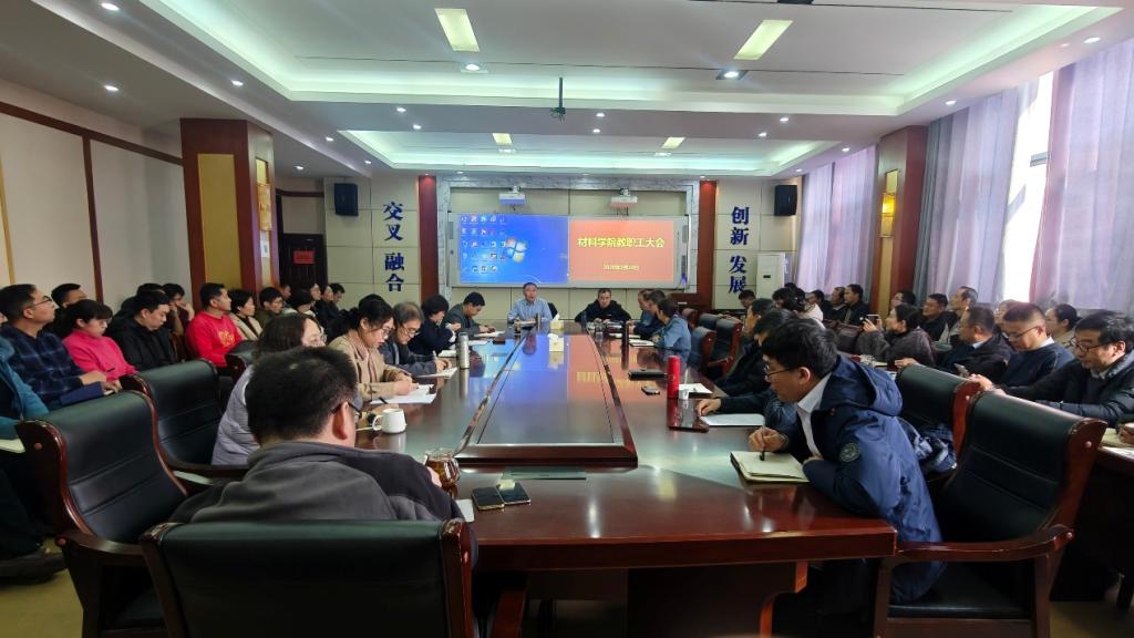3月10日下午,材料学院于J2-434会议室召开新学期全体教职工大会,学院全体教职工参加会议。