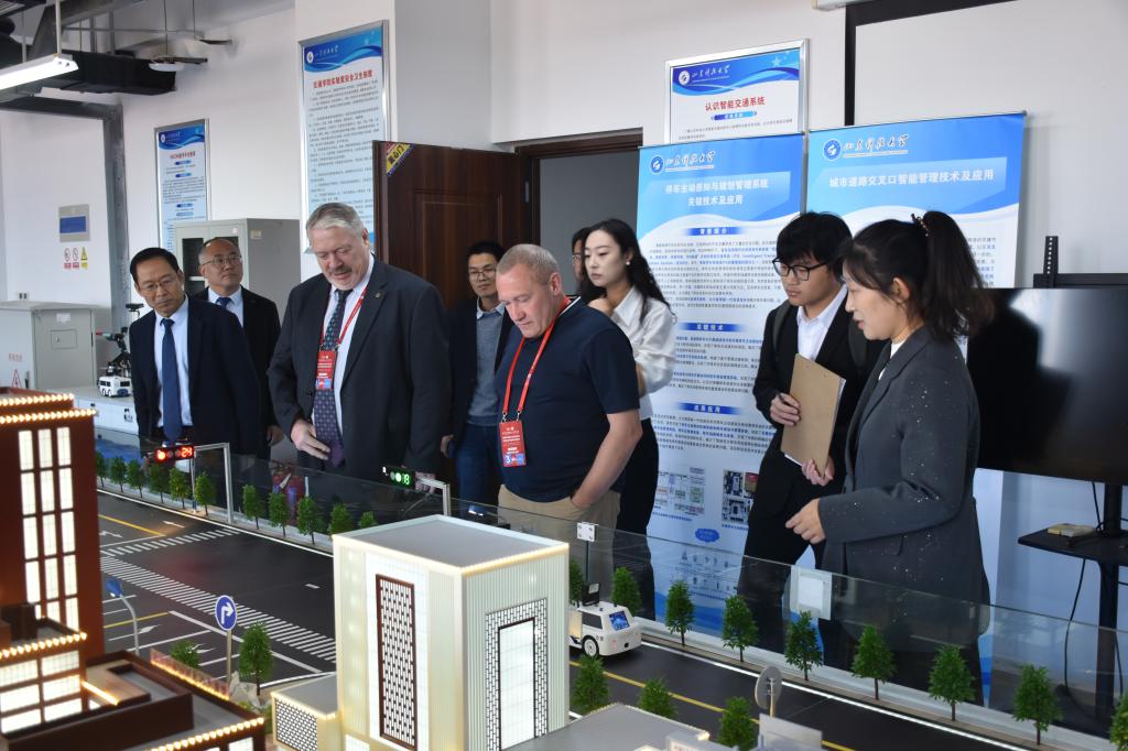 图波列夫·瓦列里一行在学院师生陪同下,参观了“山东省氢电复合动力系统控制与安全省重点实验室”及智能交通实验室。参观过程中,俄方专家查看了无人驾驶车辆、氢能观光车等代表性科研成果实体,听取了氢电复合动力系统控制等前沿技术介绍,高度认可学院科研布局与创新能力,就技术细节深入交流。