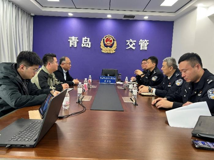 青岛市公安局交通管理局教导员王坤、大队长张景堂等领导对徐伟一行表示热烈欢迎。会上,王坤结合当前城市交通管理实际,聚焦高架桥、隧道等重点交通区域,深入分析了其在日常运行中面临的拥堵成因与管理难点,明确了需求方向。陈浩林作了“交通拥堵治理与交通安全预防”专题汇报,他从理论研究与实践应用双重视角,提出了系统性解决方案与前沿学术观点,为破解城市交通难题提供了专业支撑。