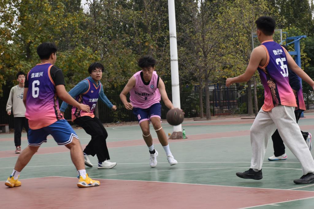 作为本次赛事的“压轴环节”,决赛现场气氛热烈。裁判哨响后,交通运输2025级4班与3班的球员迅速进入竞技状态,4班球员凭借默契的快攻配合,以精准长传撕开对方防线,前锋带球突破后巧妙分球,队友接球起跳投篮,首球命中瞬间点燃全场热情;3班球员也不甘示弱,通过紧密的防守阵型多次拦截对手进攻,后卫抓住反击机会,一记三分跳投空心入网,引来场下观众阵阵欢呼。比赛中途,双方比分交替上升,球员们为争夺篮板全力起跳、为抢断奋不顾身扑向地面、为掩护队友主动挡拆,每一个矫健的身影、每一次精准的配合,都尽显交通学子的专注与拼搏,现场加油声、呐喊声此起彼伏,将氛围一次次推向高潮。