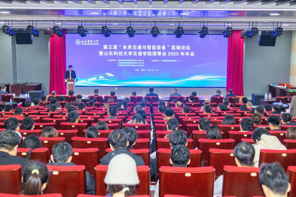 金秋送爽,胜友如云,山海相逢,共襄未来。11月15日,第三届“未来交通与智能装备”高端论坛暨山东科技大学交通学院理事会2025年年会在山东科技大学青岛校区图书信息中心举行。山东科技大学党委常委、副校长诸葛福民出席大会并致辞。交通学院党委副书记兼副院长李勇主持理事会年会,学术副院长苏会锋主持高端论坛。