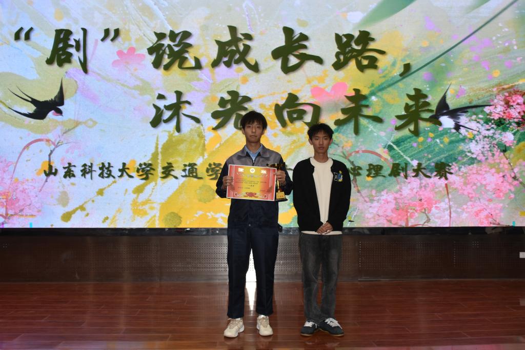 本次大赛吸引了2025级8支队伍积极参与。各参赛剧目主题鲜明、内容充实,聚焦自我成长、人际冲突、校园适应等大学生关注的热点心理议题。演员们以饱满的情绪和真挚的表演,生动呈现了学习压力、人际矛盾、学业选择等现实场景,引发在场观众的广泛共鸣。剧中人物在迷茫中寻找方向、在矛盾中达成和解、在陪伴中实现成长的历程,充分展现了当代大学生勇于面对心理困扰、积极构建健康心态的青春风采。经线上投票与现场评审,交通运输2025级3班斩获一等奖;智慧交通2025级1班、2班、4班获二等奖;智慧交通2025级3班、交通运输2025级1班、2班、4班获三等奖。满心意、葛澍阳获最佳编剧奖,左健、丁雨分获最佳男主角与最佳女主角。