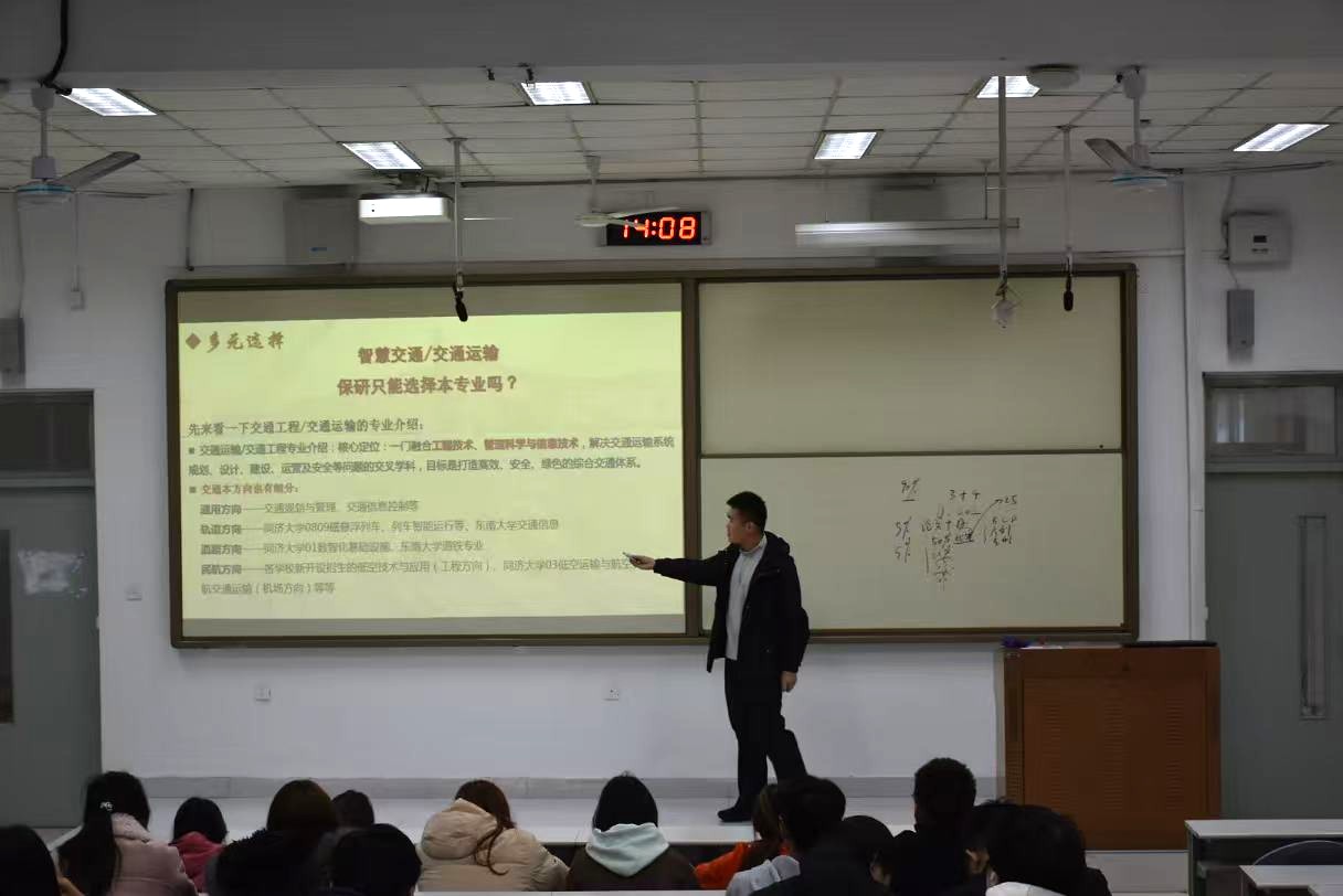 为帮助同学们深入了解保研政策,交通学院在J1-121教室成功举办“禾斗讲堂”第34期保研经验分享会。本次活动特邀已推免至同济大学的周国帅同学担任主讲,为同学们带来一场内容详实、针对性强的经验交流。