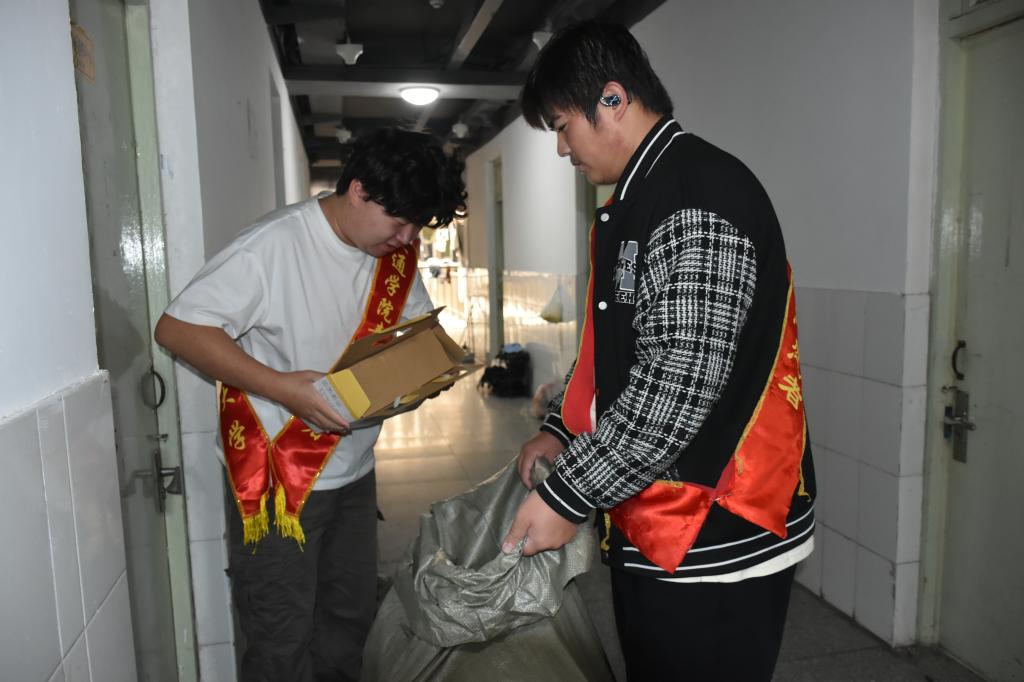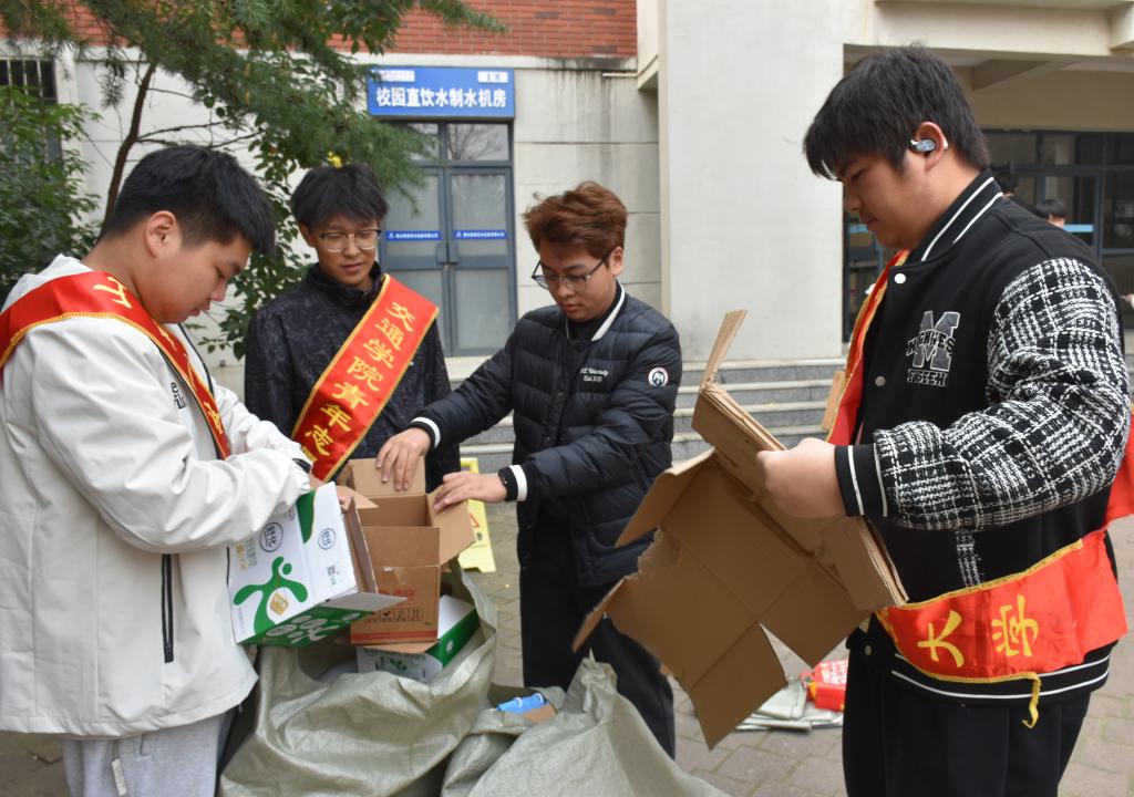 活动中,志愿者们手持编织袋逐层走访,收集同学们积攒的纸箱、塑料瓶等可回收物。不少同学提前将废品整理,积极配合回收工作。在楼下集中点,志愿者们有序进行分拣整理:将塑料瓶踩扁压实、拆解折叠纸箱,并按材质细致分类,现场忙而不乱、井然有序。现场,志愿者们主动上前,向围观的同学们亲切讲解废品回收的环保意义与资源价值,逐步打消大家的疑虑,赢得理解与支持。活动尾声,志愿者们对各类回收物品进行统一清点、打包,并运送至指定回收点,高效完成交接流程。