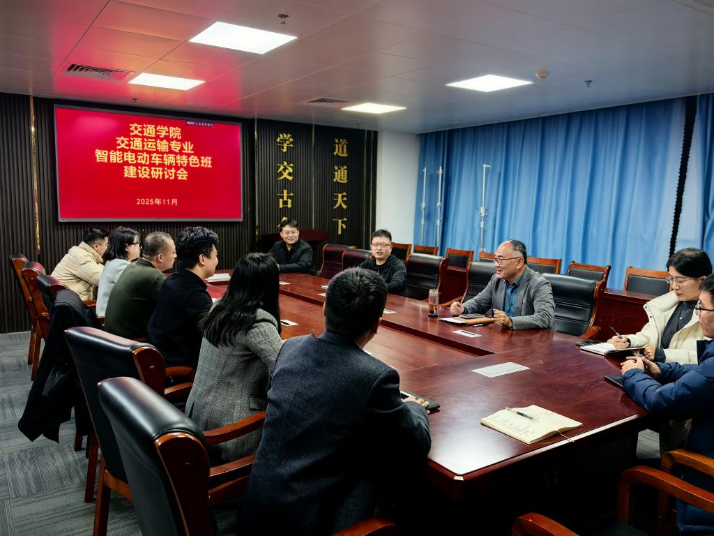 会议围绕“智能电动车辆特色班”的建设目标、培养方式、课程体系、师资配备及校企合作等方面进行了深入研讨。徐伟指出,特色班建设是学校推进“新工科”建设、深化产教融合的重要举措,要以“厚基础、精专业、重实践、强创新、高素质”为培养导向,突出学科交叉与个性发展,积极打造具有交通学院特色的高水平人才培养平台。与会教师结合特色班管理办法相关要求,就特色班学生的导师配备、课程建设与实践教学等内容进行了细致讨论,大家一致认为应充分发挥学院在交通运输、智能电动车辆等领域的学科优势,联合行业企业与科研机构,积极构建“专业+智能化+电动化”的复合型人才培养体系,为学生提供更广阔的学习与实践空间。