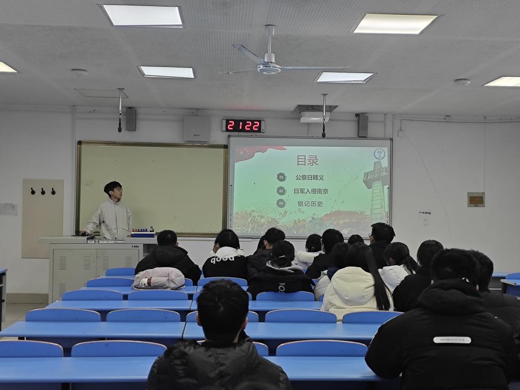 “通心相随”志愿服务协会会长胡慎铎围绕国家公祭日开展爱国主义教育分享,通过讲解历史背景、缅怀先烈事迹,引导社团成员厚植爱国情怀、传承红色基因。
