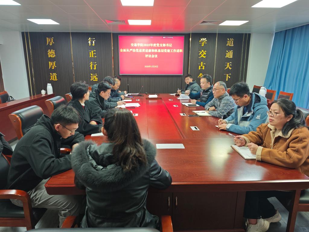 1月29日,交通学院党委在工程实训中心1210召开2025年度党支部书记全面从严治党述责述廉和抓基层党建工作述职评议会。学院副院长徐伟、团委书记刘倩婧和各党支部书记参加,会议由学院党委书记岳国伟主持。