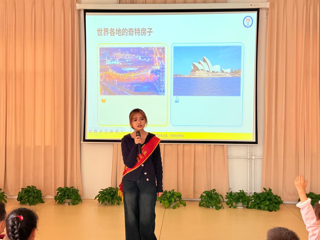 活动现场,志愿者们紧扣幼儿年龄特点与认知规律,充分发挥交通专业特长,精心设计交通安全启蒙、趣味认知拓展两大互动板块,打造了一堂沉浸式、体验式的成长启蒙课。在交通安全核心宣讲环节,志愿者们用通俗易懂的语言、生动形象的动画演示,为孩子们讲解“红灯停、绿灯行”“过马路走斑马线”“远离车辆盲区”等基础出行安全规则;通过搭建模拟交通场景,手把手教授停止、直行、转弯等标准交通指挥手势,配合互动问答、交通安全儿歌传唱等幼儿喜闻乐见的形式,让安全知识入脑入心。在建筑认知启蒙拓展环节,志愿者们通过趣味闯关游戏、创意主题绘画等形式,引导孩子们在动手动脑中感受建筑结构的独特魅力,充分激发孩子们的探索欲与创造力。整场活动氛围轻松愉悦,孩子们积极参与、踊跃互动,在欢声笑语中收获知识、提升能力。