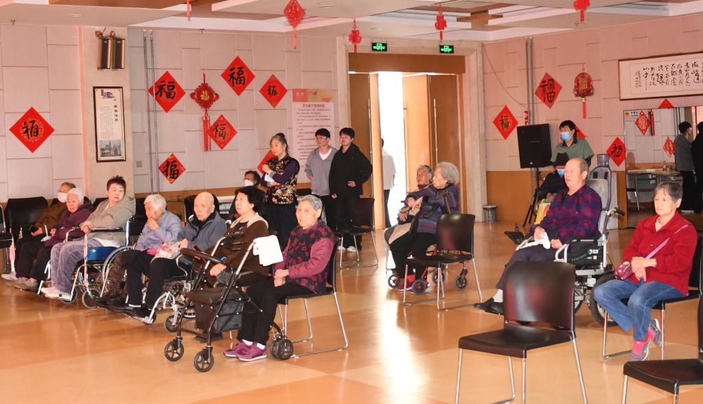 活动现场,志愿者们与护理院工作人员密切配合,全程贴心做好服务保障。针对行动不便的老人,志愿者们两两结对,小心翼翼地搀扶老人从房间前往观影区,一路缓步随行、轻声叮嘱,全程守护老人出行安全。抵达观影区后,大家主动为老人们整理座椅、递上温水,细心调整观影角度,用心营造温馨舒适的观影环境,让老人们在细节中感受到如家般的温暖。观影间隙,志愿者们为老人们献上了精心准备的文艺节目:婉转悠扬的戏曲选段《赤伶》唱腔细腻、韵味十足,引得老人们沉浸其中、频频点头;温情治愈的歌曲《暖暖》旋律轻快、歌声暖心,熟悉的旋律瞬间点燃现场氛围,老人们跟着节拍轻轻拍手哼唱,脸上洋溢着幸福的笑容,现场暖意融融、温情满满。
