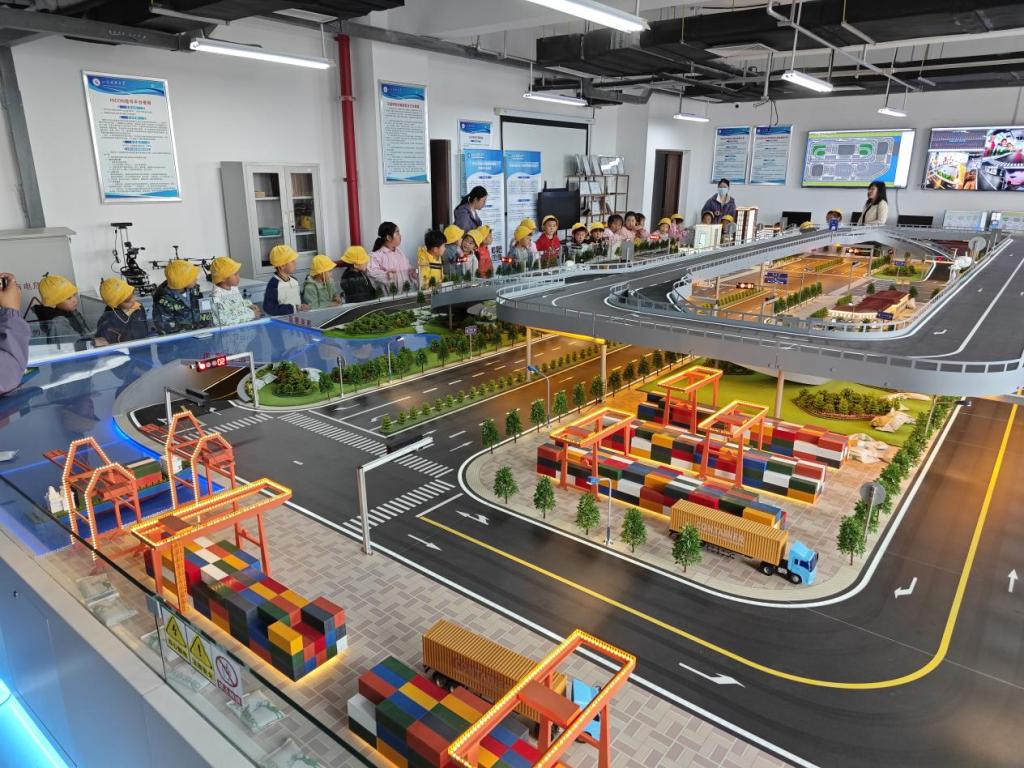 在山东省智能监测与运维重点实验室,智慧交通沙盘成为孩子们关注的焦点。港口、公路、铁路、城市轨道等多种交通系统协同运行的场景动态展现在眼前。孩子们一边观察,一边聆听讲解,在沉浸式的互动中直观理解了现代交通的系统运作。