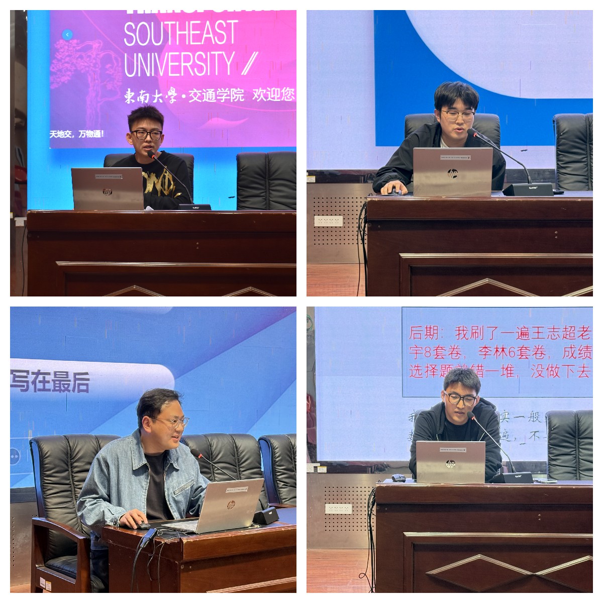 4月24日,交通学院“禾斗讲堂”第37期——考研经验分享会在J9-144顺利举办。本次活动邀请了在2026年研究生考试中取得优异成绩的四位学长——张家硕、徐一川、宋嘉豪、李峰作为主讲嘉宾。