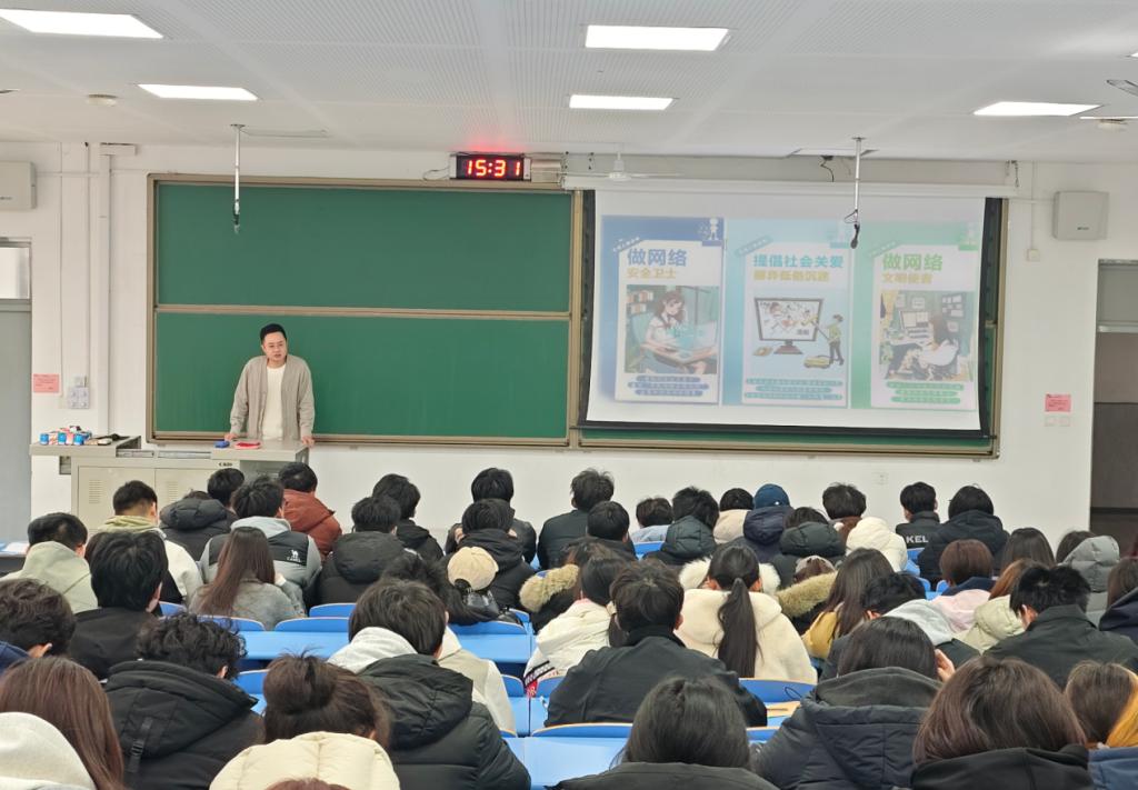 活动中,门昌玮老师紧扣新媒体传播规律,结合艺术生专业特点,围绕“正能量内容创作规范”、“网络诉求理性表达路径”、“新媒体平台文明发声技巧”三大模块展开分享。通过剖析艺术领域新媒体传播典型案例,讲解网络谣言识别、恶意评论应对等实用知识,明确共青团员在网络空间的责任与义务。互动环节设置 “新媒体文明知识问答”、“正能量文案即兴创作”等趣味形式,同学们踊跃参与,在轻松氛围中巩固网络文明知识,提升新媒体表达素养。现场还发起“青春护网”倡议,号召大家以专业所长创作正能量内容,共同守护清朗网络空间。