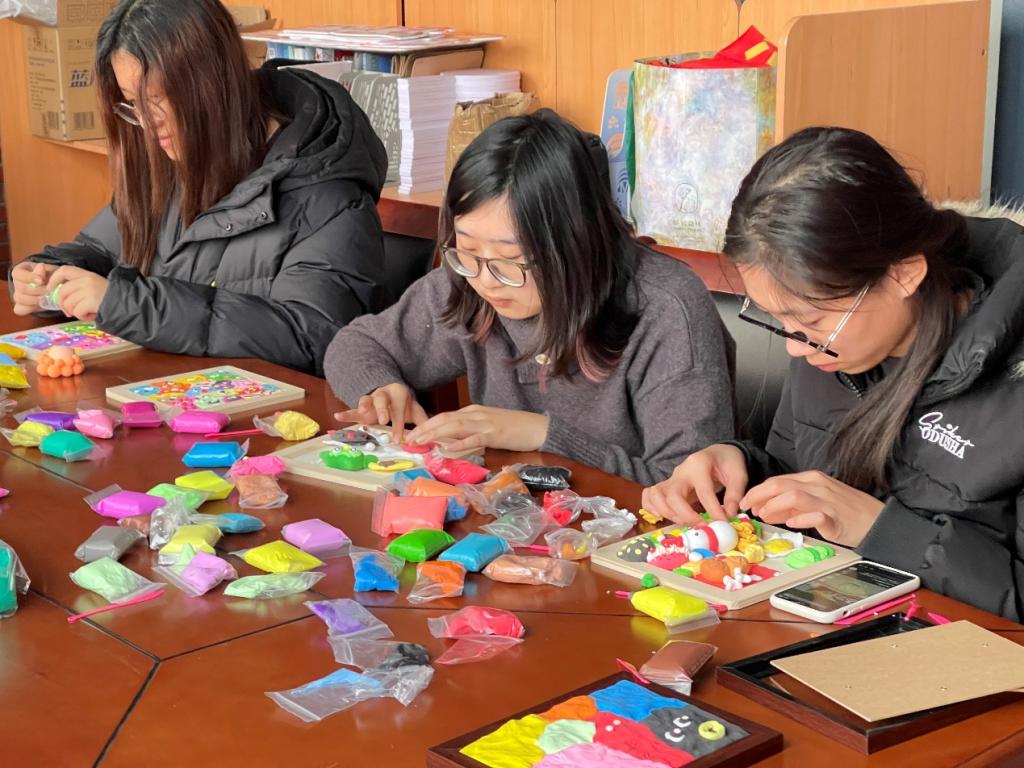 12 月 16 日,艺术学院于 J9 四楼学生会活动室开展 “多巴胺情绪 DIY 表达”艺术疗愈活动,旨在帮助同学们释放情绪、舒缓压力。活动以粘土为创作载体,引导学子将内心情绪融入艺术创作,营造出治愈的活动氛围。