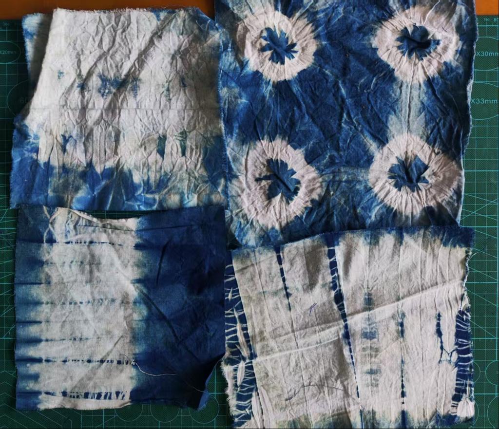 活动搭建蓝染作品展示专区,营造非遗文化氛围。活动开始,赵可馨,蒋文硕两位学姐讲解了蓝染工艺的历史渊源与文化内涵,演示了扎染、夹染的核心技法与蓝印花布制作流程,帮助同学们快速掌握基础操作要点。在学姐的现场指导下,同学们依次完成了布料处理、描稿刻版、涂防染浆、捆扎塑形、浸染晾晒等步骤,灵活运用夹扎、缝扎等方式,打造专属蓝染包袋。大家在创作中交流技巧、分享创意,沉浸式感受传统工艺的魅力。活动尾声,同学们展示作品、分享心得,现场氛围温馨融。