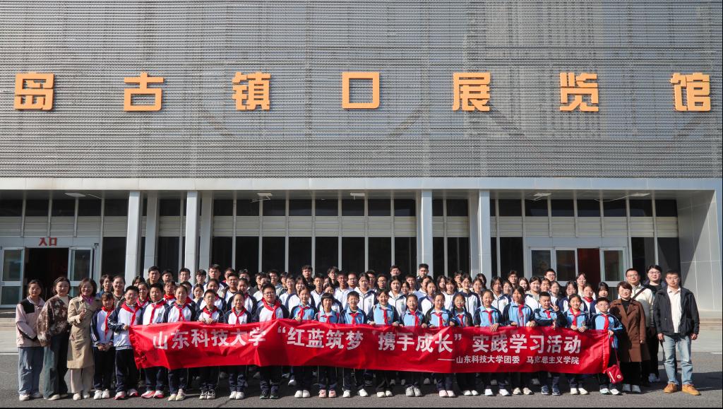为深入学习贯彻习近平新时代中国特色社会主义思想和党的二十届四中全会精神,推进大中小学思政课一体化建设,2025年11月1日上午,由山东科技大学团委、马克思主义学院主办的“红蓝筑梦 携手成长”实践学习活动在国家级“大思政课”实践教学基地——青岛古镇口融合创新主题园举行。