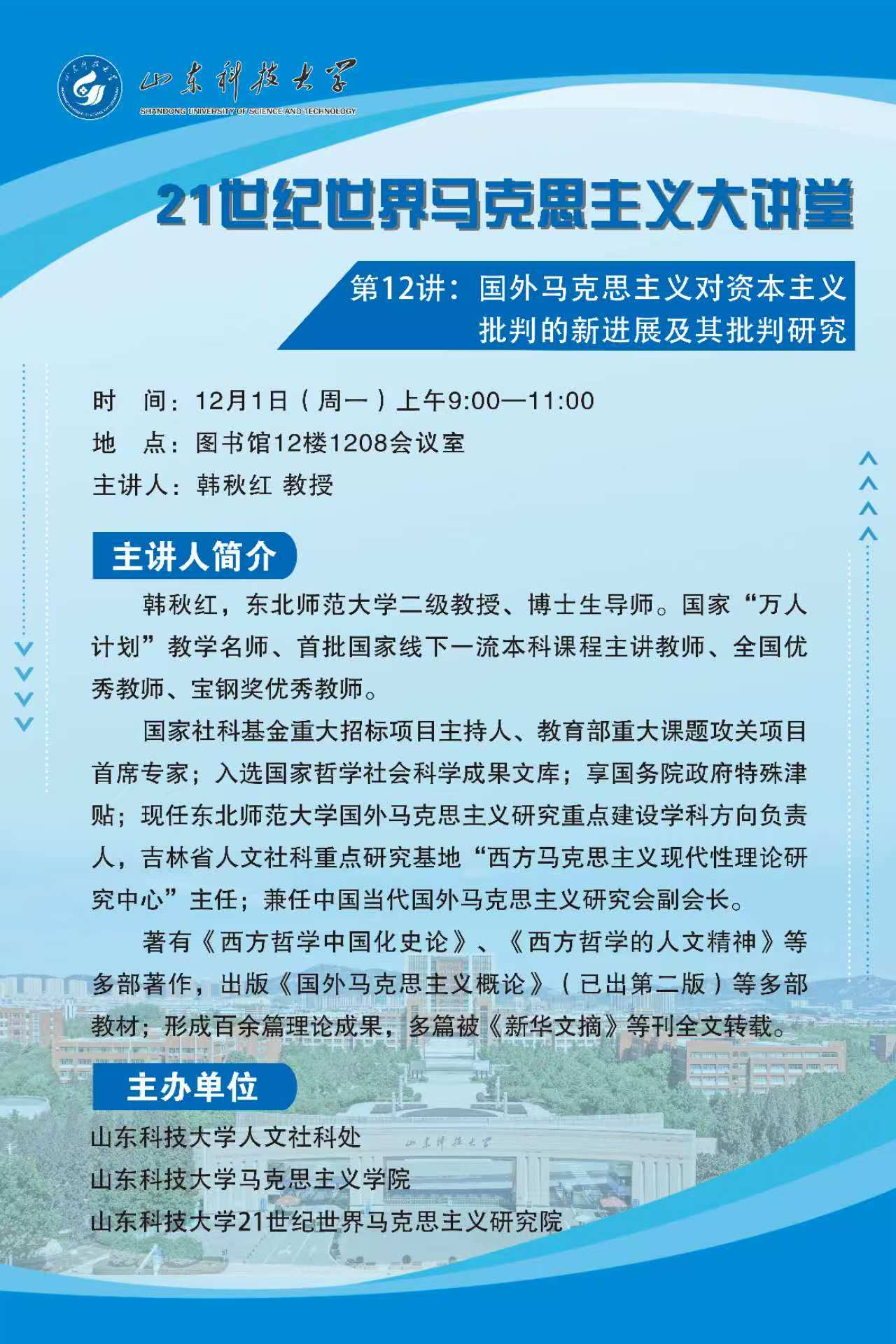 21世纪世界马克思主义大讲堂第12讲:国外马克思主义对资本主义批判的新进展及其批判研究
