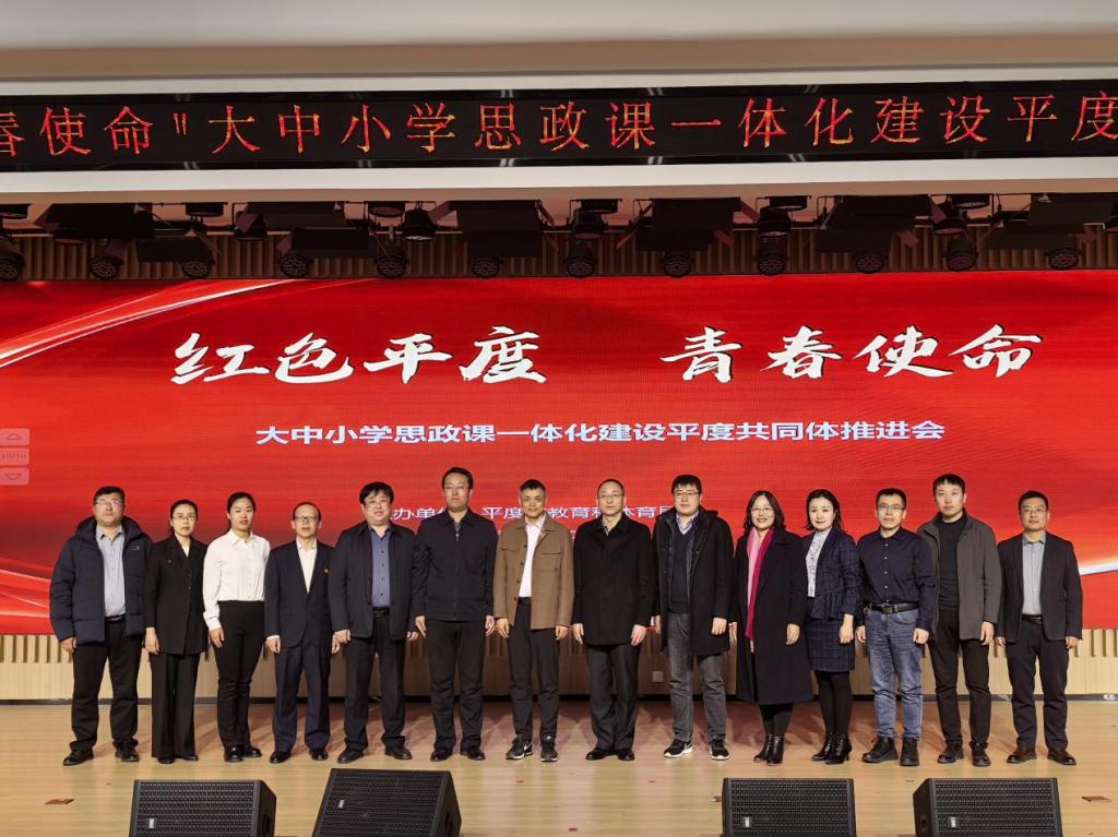 为深化思政课改革创新,推动大中小学思政课一体化建设走深走实,12月12日上午,“红色平度 青春使命”大中小学思政课一体化建设平度共同体推进会在平度朝阳小学举行。马克思主义学院党委书记徐波、副院长高明,平度师范学校副校长刘显志,平度市教育和体育局党组成员、副局长李德生,各中小学主要负责人、分管德育工作领导干部,思政课教师代表等参加活动。