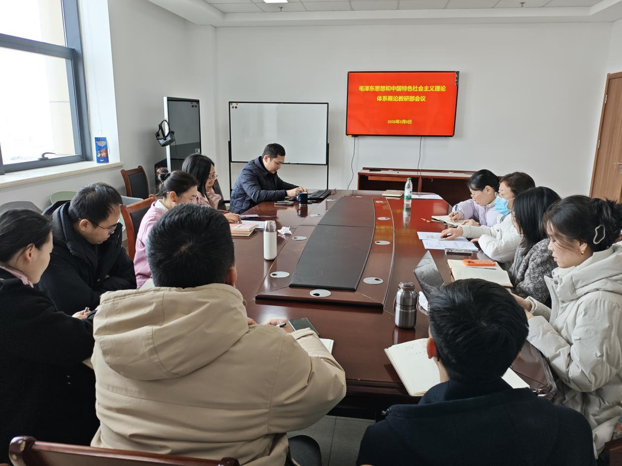 3月8日上午,毛泽东思想和中国特色社会主义理论体系概论教研部在图书信息中心1206会议室召开新学期课程教研工作会议,会议由主任尹诵主持,全体授课教师参加。