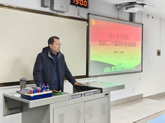 为深入学习贯彻党的二十届四中全会精神,引导青年学子勇担海洋强国使命,12月26日,海洋学院于J7-105教室举办党的第二十届四中全会精神专题宣讲会。海洋学院执行院长杜立彬担任主讲人。