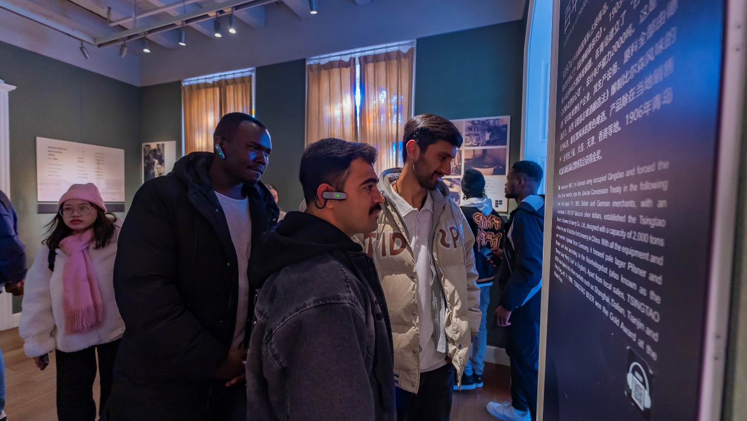 研学途中,国际学生们先后探访小鱼山公园、八大关、栈桥等标志性地点,在登高远眺的壮阔与漫步街巷的雅致中,领略青岛的自然之美与历史底蕴。在青岛啤酒博物馆,学生们沉浸式穿越百年酒厂的岁月长河,从古老酿造设备到智能生产流水线,从啤酒起源传说到百年发展历程,在古今交融中深刻感受青岛工业文化的深厚底蕴与创新活力。