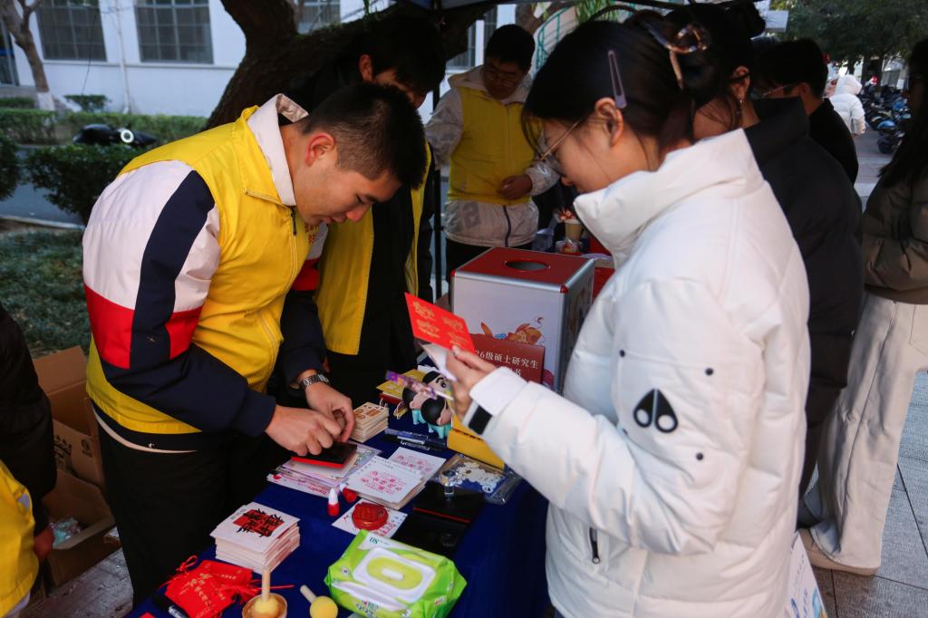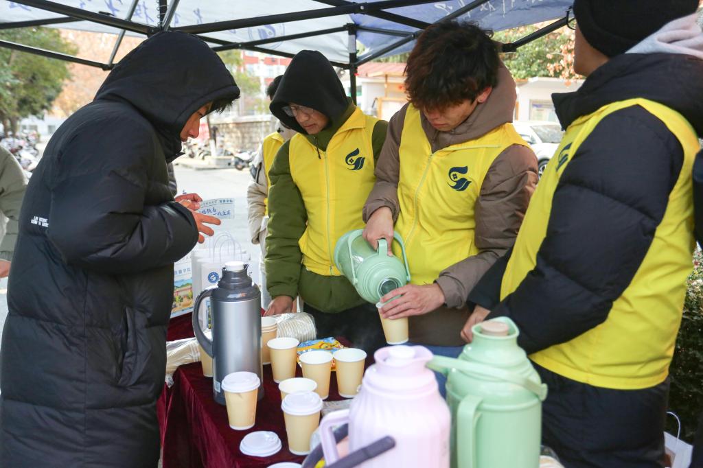 一号楼前广场上,“咖暖研橙”冬日暖心驿站茶香氤氲、“橙意”满满。工作人员将热气腾腾的茶饮与咖啡,以及饱含“橙”功上岸祝福的鲜橙送到学子手中,并送上诚挚的加油。一杯热饮,驱散了身心的寒意;一声问候,坚定了前行的步伐。一名考研学子感慨:“这份关怀不仅暖在手心,更暖在心头,让我们觉得所有的付出都被看见、被鼓励。”