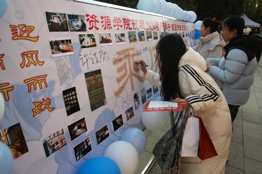 风好正是扬帆时,奋楫逐浪天地宽。在考研冲刺的关键时刻,资源学院全体师生以最真挚的情感与最实在的行动,为每一位拼搏的学子加油助威。衷心祝愿所有2026届考研学子:笔下生辉,从容应考,得偿所愿,一战成硕,迈向更加辉煌的未来!(文:邵彬 何爽 张晓晖 图:郝敬如 张靖骞 高喆 黄秋涵 刘梦想 史一凡)