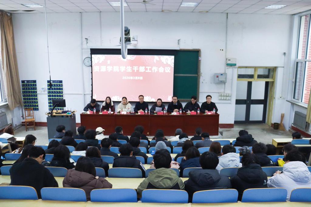 3月8日,资源学院在1A107教室召开全体学生干部工作会议。学院党委副书记、副院长程家国作新学期工作动员讲话。全体辅导员出席会议,学院全体学生干部参加。