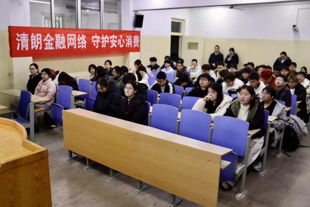 活动中,宣讲员围绕金融消费者八项权利、电信诈骗防范、非法借贷识别、银行卡规范使用及个人征信守护五个方面展开系统讲解。结合日常消费场景与典型案例,宣讲员深入剖析了刷单返利、AI换脸诈骗、校园贷陷阱等常见风险,引导学生了解维权法律依据,掌握实用防诈技能,切实提升金融风险识别与防范能力。