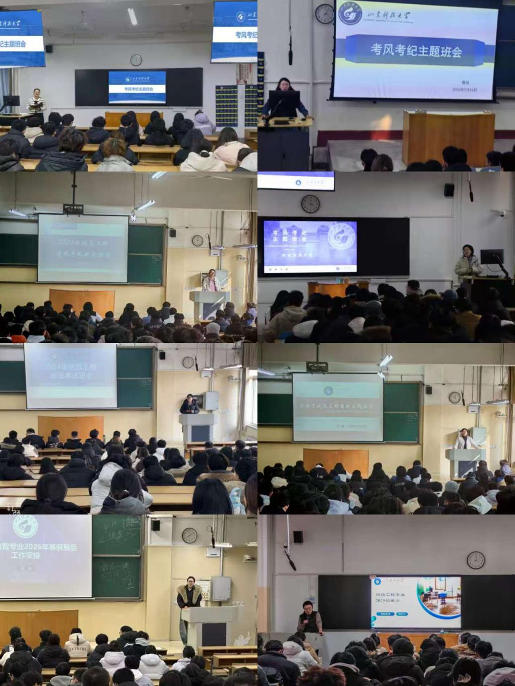 班会上,辅导员们结合过往考试中的典型违纪案例,以案释法、以例警人,对《学生手册》中考场考试规则、违规行为认定标准及相应处理办法进行了细致解读,清晰划定纪律红线,引导同学们牢固树立诚信应考意识。同时,针对期末复习阶段的重点难点,辅导员们还为同学们提供了复习规划建议,鼓励大家合理安排时间、高效备战考试,并提醒同学们及时调整心态,以从容自信的状态迎接考核,共同守护公平公正的校园考试环境。