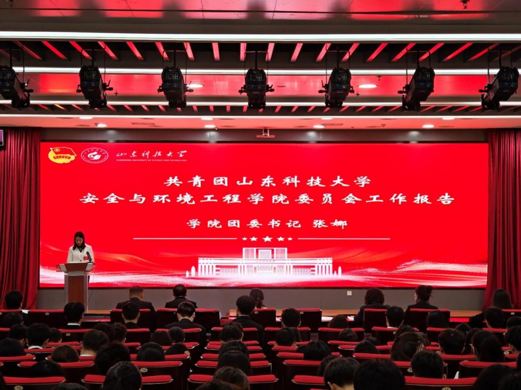 张娜代表共青团山东科技大学安全与环境工程学院委员会向大会作《勇担使命立前沿 激扬青春铸一流 为实现建设工科主导、特色鲜明的高水平应用研究型大学目标贡献青春力量》工作报告。报告分为两个部分:一是全面回顾和总结安全与环境工程学院共青团近年来工作情况;二是确定今后安全与环境工程学院共青团的工作规划与展望。