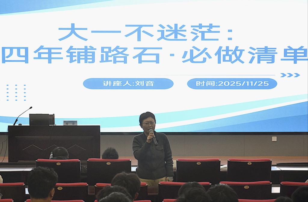 为帮助大一同学更好的适应大学生活、明确学业规划,破解学习中的迷茫与困惑,11月25日,安全学院在图书信息中心求新讲堂开展“大一不迷茫:四年铺路石必做清单”分享会。安全学院副院长刘音主讲,并邀请学院优秀学子进行经验分享。