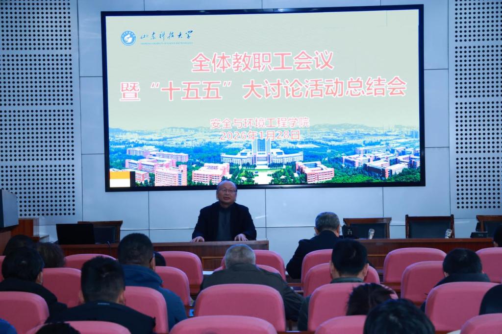 1月29日,安全学院于J4-319报告厅召开全体教职工会议暨“十五五”大讨论活动总结会。总结“十四五”时期学院工作成效,确立“十五五”时期发展重点任务。会议由学院党委书记张恩生主持,院长程卫民作总结讲话,院领导班子成员及全体教职工参会。
