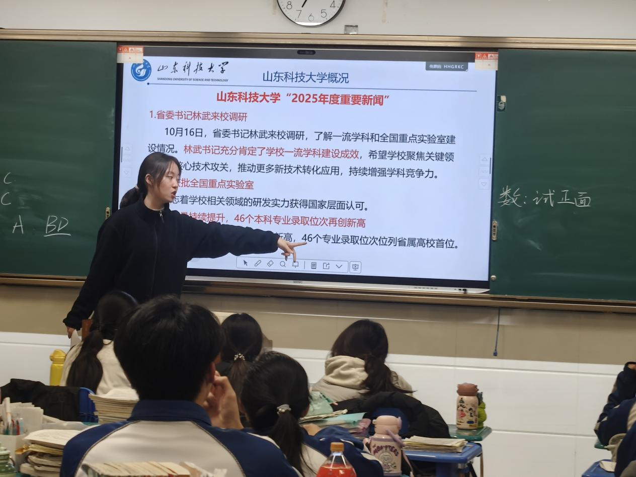 再次回到熟悉的高中校园,站在曾经奋斗过的地方,看着台下一张张和当年的我一样充满期待与迷茫的面孔,心中满是感慨与温暖。作为一名从这里走出去、如今就读于山东科技大学的学生,这次回来,不仅是分享,更是一次回望与感恩。