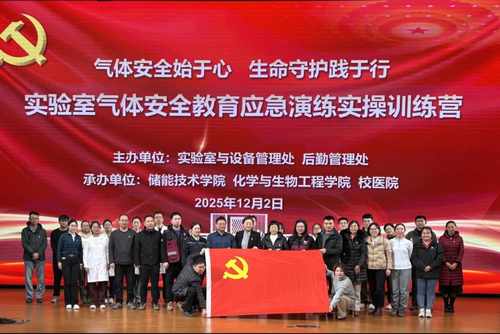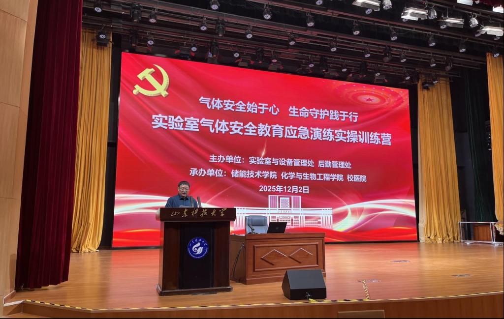 为深入推进实验室安全教育精准化,规范气体安全使用流程,全面提升师生应急处突能力,2025年12月2日至10日,山东科技大学以“气体安全始于心 生命守护践于行”为主题,成功举办实验室气体安全教育应急演练实操训练营。活动由实验室与设备管理处牵头,联合后勤管理处(校医院)、储能技术学院、化学与生物工程学院共同举办,通过“理论培训+应急演练+实操训练”三大模块的系统化、场景化设计,构建起一体化安全能力提升平台,既是深化多部门协同联动的具体实践,更是推动党建与业务工作深度融合的生动写照。