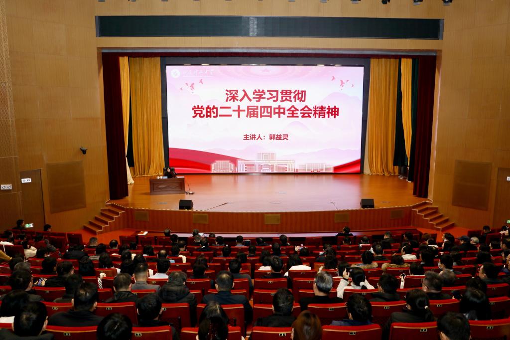 为深入学习宣传贯彻党的二十届四中全会精神,切实把思想和行动统一到党中央决策部署上来,12月17日,校党委副书记郭益灵为机关一党委全体教职工宣讲党的二十届四中全会精神。