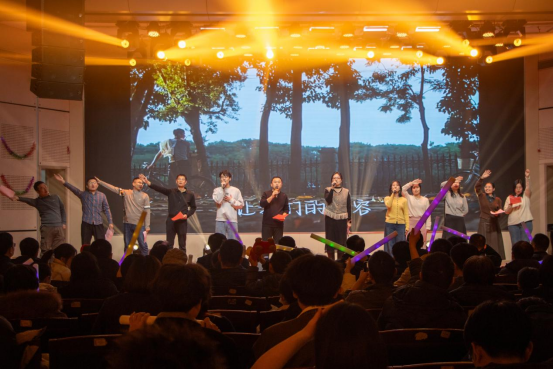 晚会期间还穿插了互动游戏和抽奖环节,欢呼声、掌声此起彼伏,现场洋溢着欢乐祥和的节日气氛。最后晚会在全体演职人员合唱的《日不落》中圆满落幕,温馨的旋律萦绕礼堂,师生们挥舞着荧光棒,共同定格这一美好瞬间。