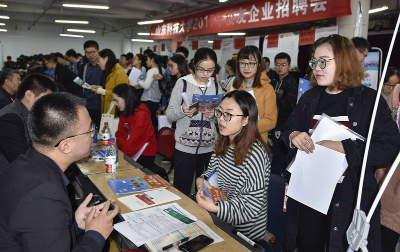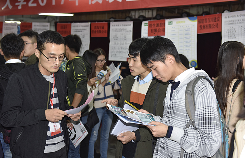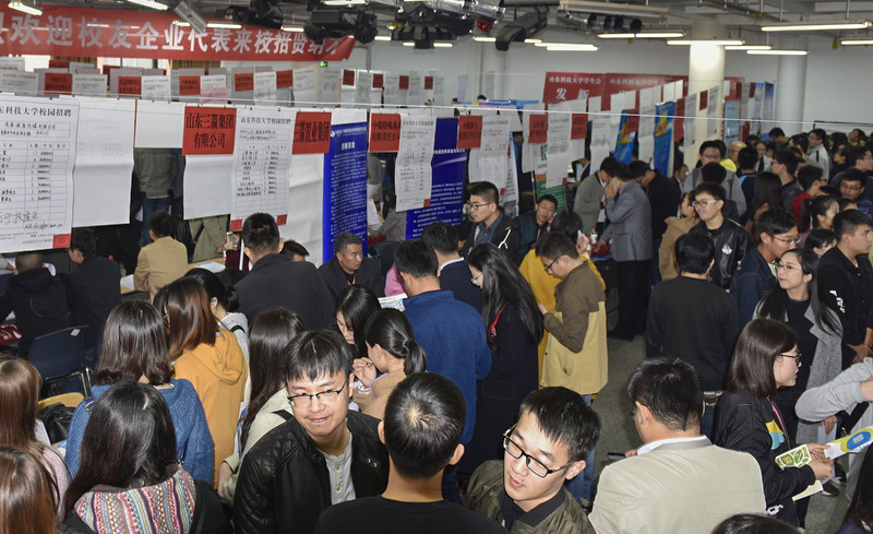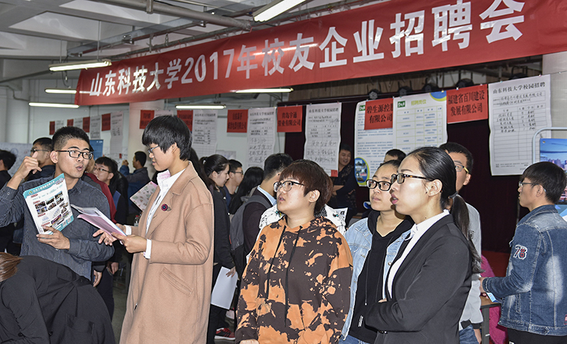 10月27日,一场特殊的招聘会在山东科技大学举行。来自北京、浙江、山东等11个省市的65家校友企业来校招聘,提供了2700余个就业岗位,岗位涉及金融、管理、建筑、材料、机械、语言等多领域多行业。